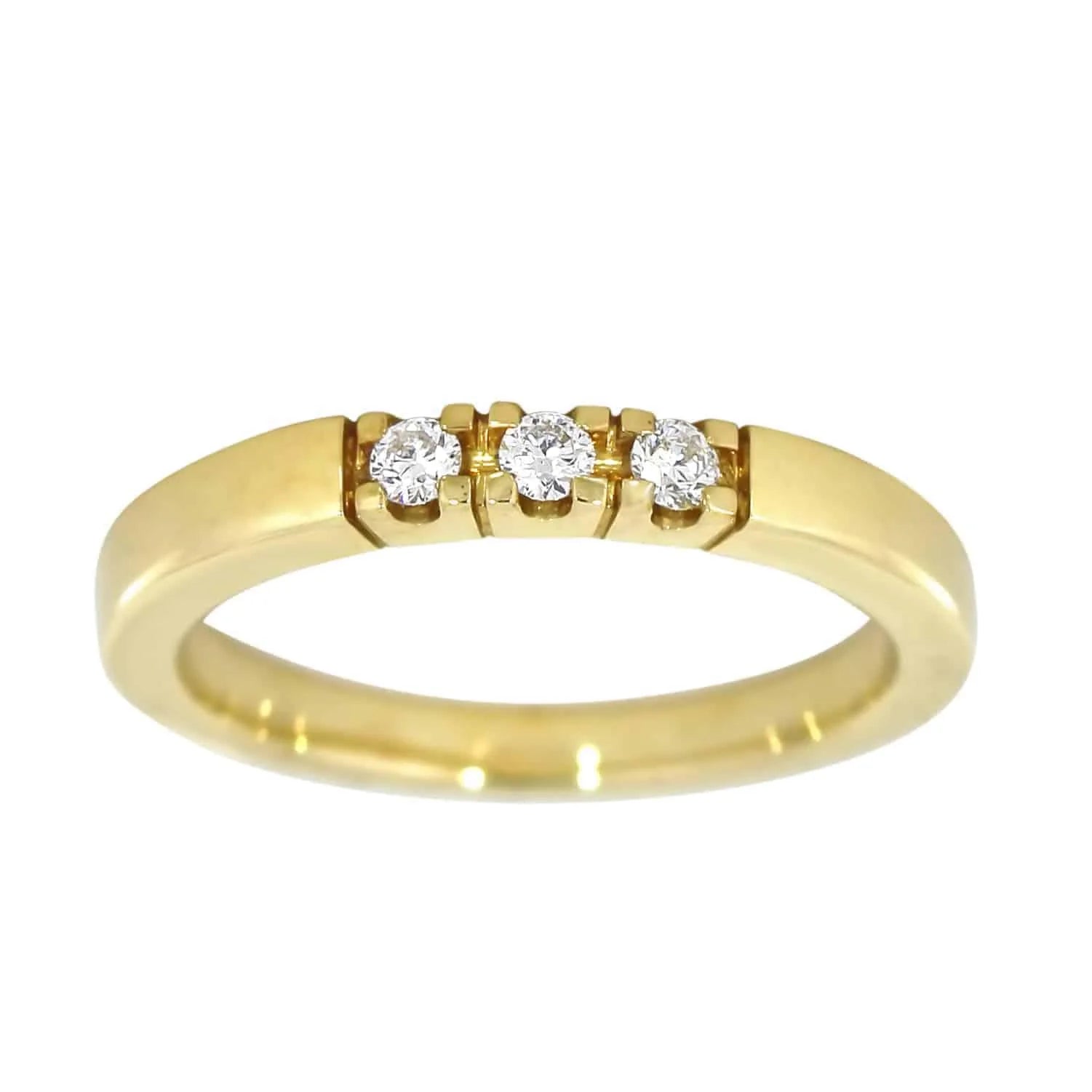 Allianseringen er som skapt for de store anledningene - og de runde merkedagene. Ringene er i 14karat (585) gull, med den klassiske i utformingen med fire klør på hver fatning. En alliansering er laget slik at du kan bygge på med flere diamanter etterhvert. Diamantene utgjør 0,09ct totalt.