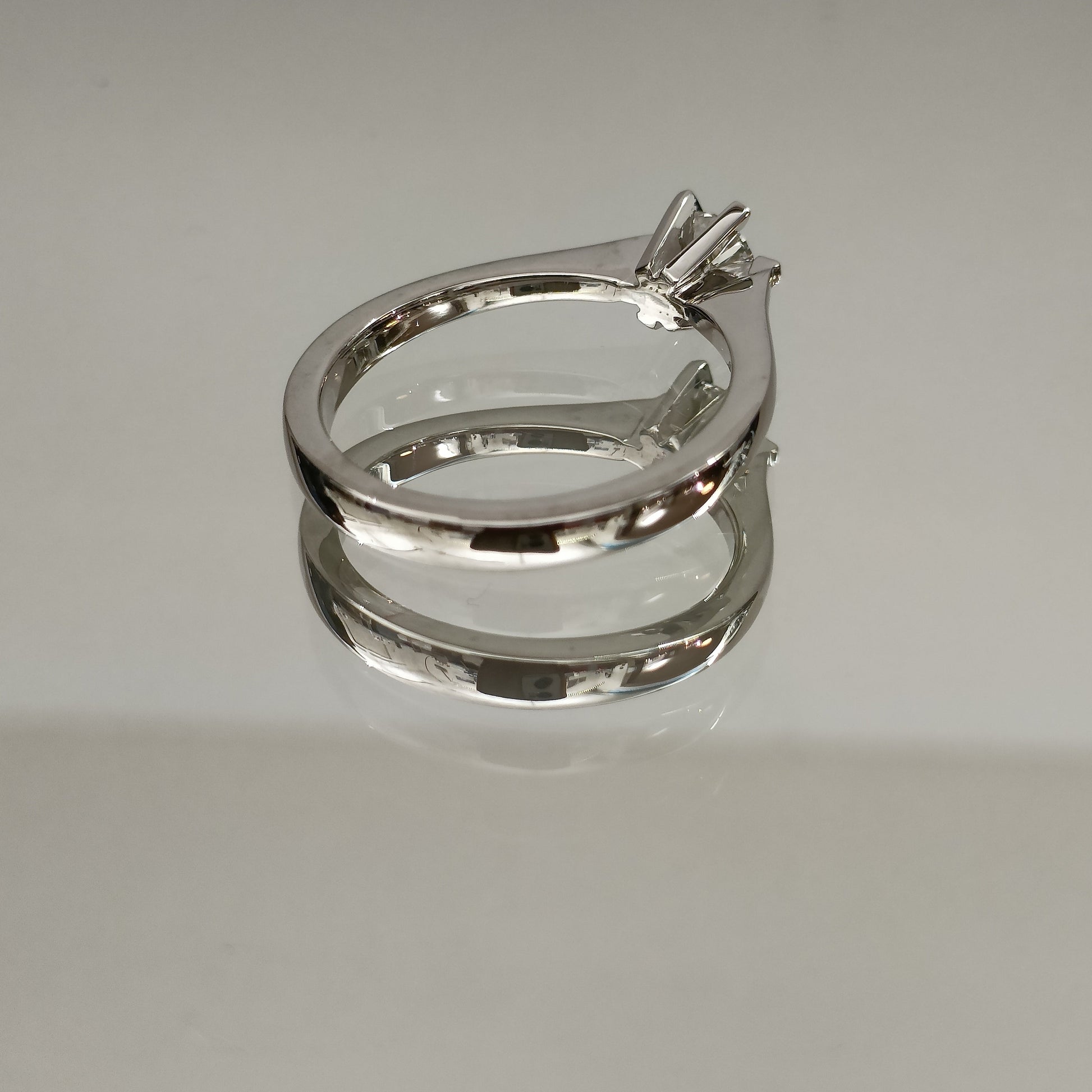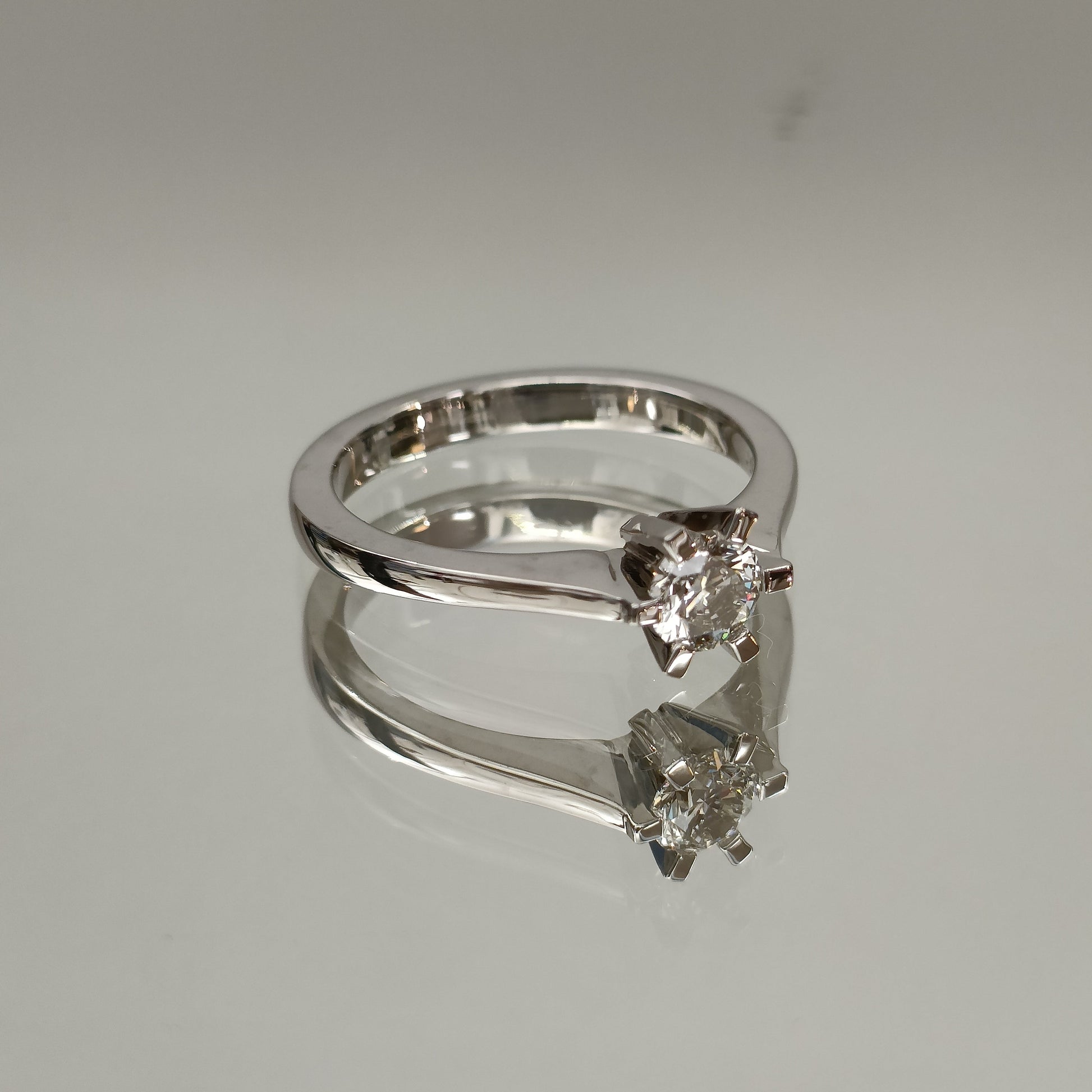 Unik enstensring med 6 klør laget i 14karat (585) hvitt gull. Ringskinnen er lett avrundet som gir ringen et delikat uttrykk, samtidig som den er svært behagelig å bruke. Diamanten utgjør 0.52ct