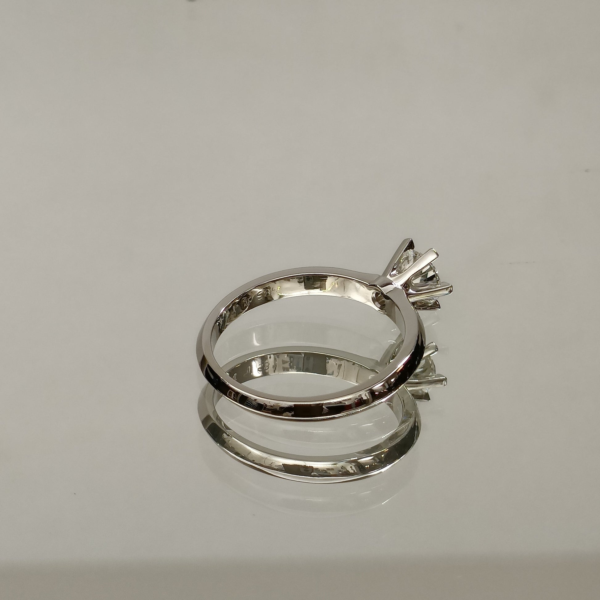 Unik enstensring i 14karat (585) hvitt gull. Diamanten på 0.65ct er elegant fattet med 6klør slik at diamanten tråler på hånden. Ringskinnen er smal og lett avrundet som gir ringen et delikat uttrykk, samtidig som den er svært behagelig å bruke.
