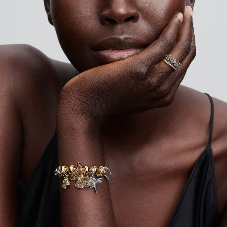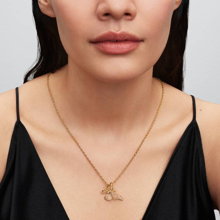 Spre vingene dine med vår overdimensjonerte sommerfuglcharm. Charmen er belagt med 14k gull og kommer med et openwork-design med plique-a-jour-harpiks og svevende steiner, og symboliserer naturens evne til transformasjon.