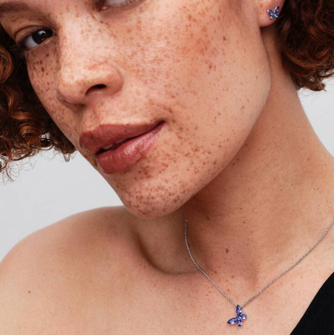 Slipp fantasien løs. Våre sommerfuglformede øredobber i sterlingsølv er et fargerikt tilskudd til smykkestabelen din, med blå menneskeskapte krystaller som minner om en Starry Night-himmel. Bruk de gjerne sammen med matchende halskjede for en komplett look.